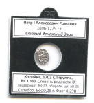 1 копейка KG# 1922 (Регулярный выпуск) (KG# 1922) 1702. В холдере. Петр I Алексеевич Романов 1696—1725 гг. Старый денежный двор. Серебро. Вес 0,28 г