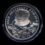 2 рубля — 225-летие со дня рождения И. А. Крылова 1994 ЛМД. В капсуле, с сертификатом