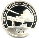 10 разменных знаков — Взрыв метеорита над Челябинском. В серебре 2013 СПМД. В капсуле. Грибков — 13.4