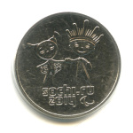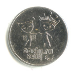 25 рублей — Талисманы и логотип XI Паралимпийских зимних игр «Сочи 2014» 2014 СПМД. В запайке