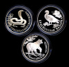 Комплект монет 1 рубль, серия «Красная книга». «Среднеазиатская кобра», «Краснозобая казарка», «Гималайский медведь» — В капсулах, с сертификатами. Банковская сохранность монет