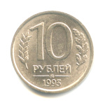 10 рублей — Немагнитная 1993 ММД. штемпельный блеск