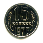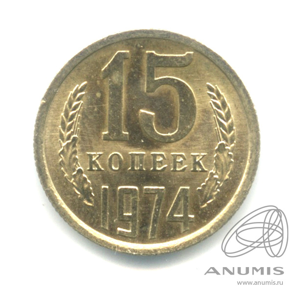 Монета регулярного выпуска: 15 копеек 1974 года. 15 копеек 1961 — 1991 гг. Союз Советских Социалистических Республик: СССР поздний (1961 — 1991). Медь-никель, 3 г, ø 20 мм, Гурт: Рубчатый.