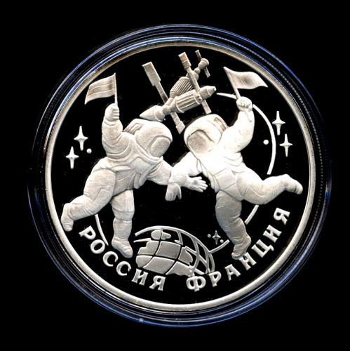 Юбилейная монета: 3 рубля 1993 года «100-летие Российско-Французского союза». 3 рубля 1992 — 2020 гг. Российская Федерация: Банк России (1992 — 1996). Серебро 925, 34 г, ø 39 мм, Гурт: Рубчатый. Каталожный номер: 5111−0012. Тираж: 40000 шт.